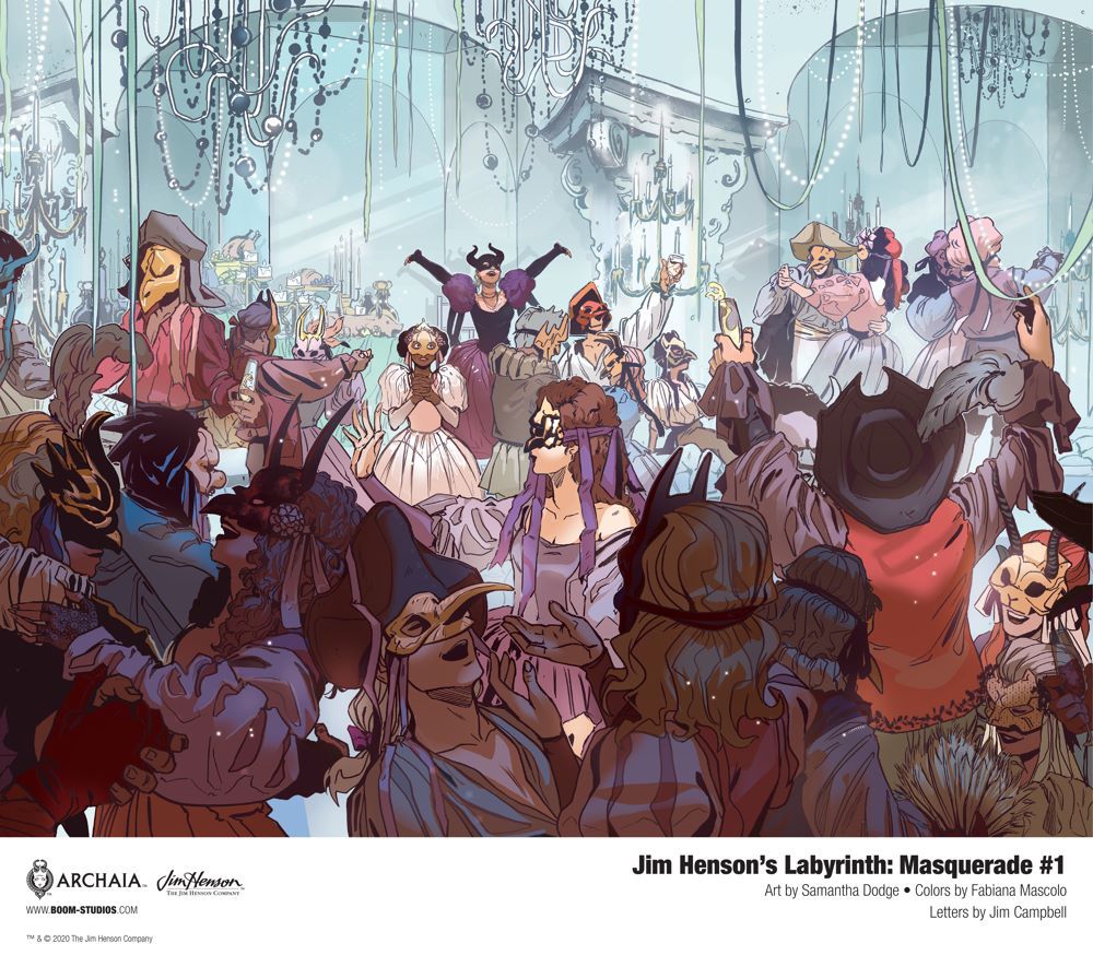 Media Release -- BOOM! Studios today revealed a first look at JIM HENSON'S LABYRINTH: MASQUERADE #1, a brand new oversized one-shot issue starring the strange and wondrous characters of Jim Henson's beloved fantasy classic Labyrinth, from award-winning author Lara Elena Donnelly (Amberlough), artists French Carlomagno (The Dark Crystal: Age of Resistance), Samantha Dodge (Catwoman: Soulstealer), and Pius Bak (The Magicians: Alice's Story), colorists Francesco Segala (Firefly) and Fabiana Mascolo (An Unkindness of Ravens), and letterer Jim Campbell (Firefly), available in December 2020.