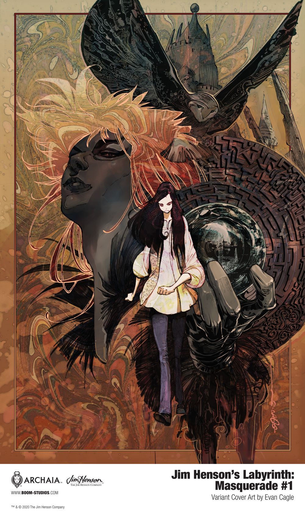 JIM HENSON'S LABYRINTH: MASQUERADE #1 features main cover art by artist Jenny Frison (Wonder Woman) and variant cover art by Evan Cagle (Strange Skies Over East Berlin).