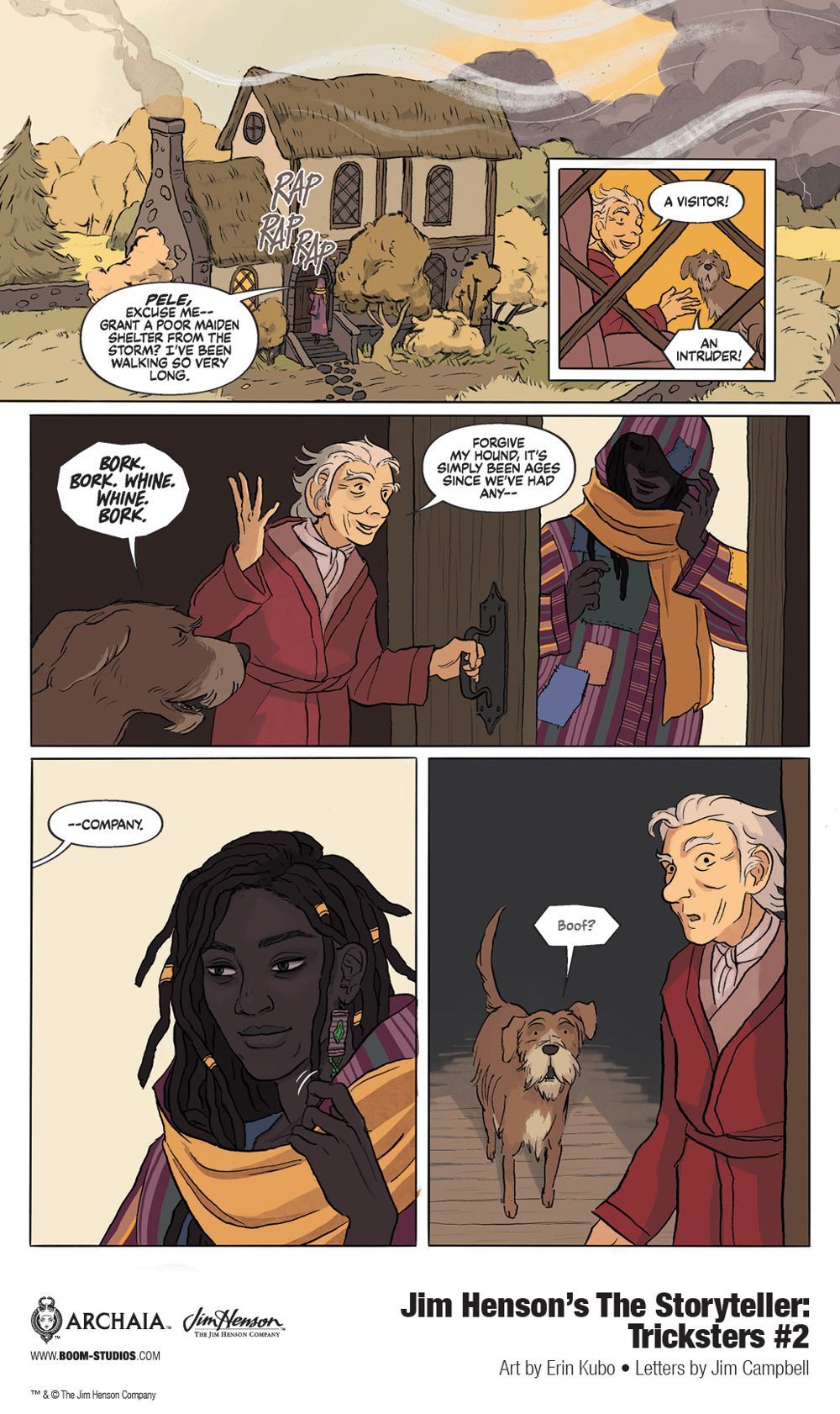 JIM HENSON'S THE STORYTELLER: TRICKSTERS is the latest release from BOOM! Studios' ambitious Archaia imprint, home to graphic novels such as Bolivar by Sean Rubin; Mouse Guard by David Petersen; Slaughterhouse-Five by Kurt Vonnegut, Ryan North, and Albert Monteys; The Sacrifice of Darkness by Roxane Gay, Tracy Lynne-Oliver, and Rebecca Kirby; Big Black: Stand at Attica by Frank "Big Black" Smith, Jared Reinmuth, and Ameziane, We Served the People by Emei Burell, and licensed series including Lev Grossman's The Magicians by Lilah Sturges and Pius Bak, as well as Jim Henson's The Dark Crystal: Age of Resistance and Jim Henson's Labyrinth: Coronation.