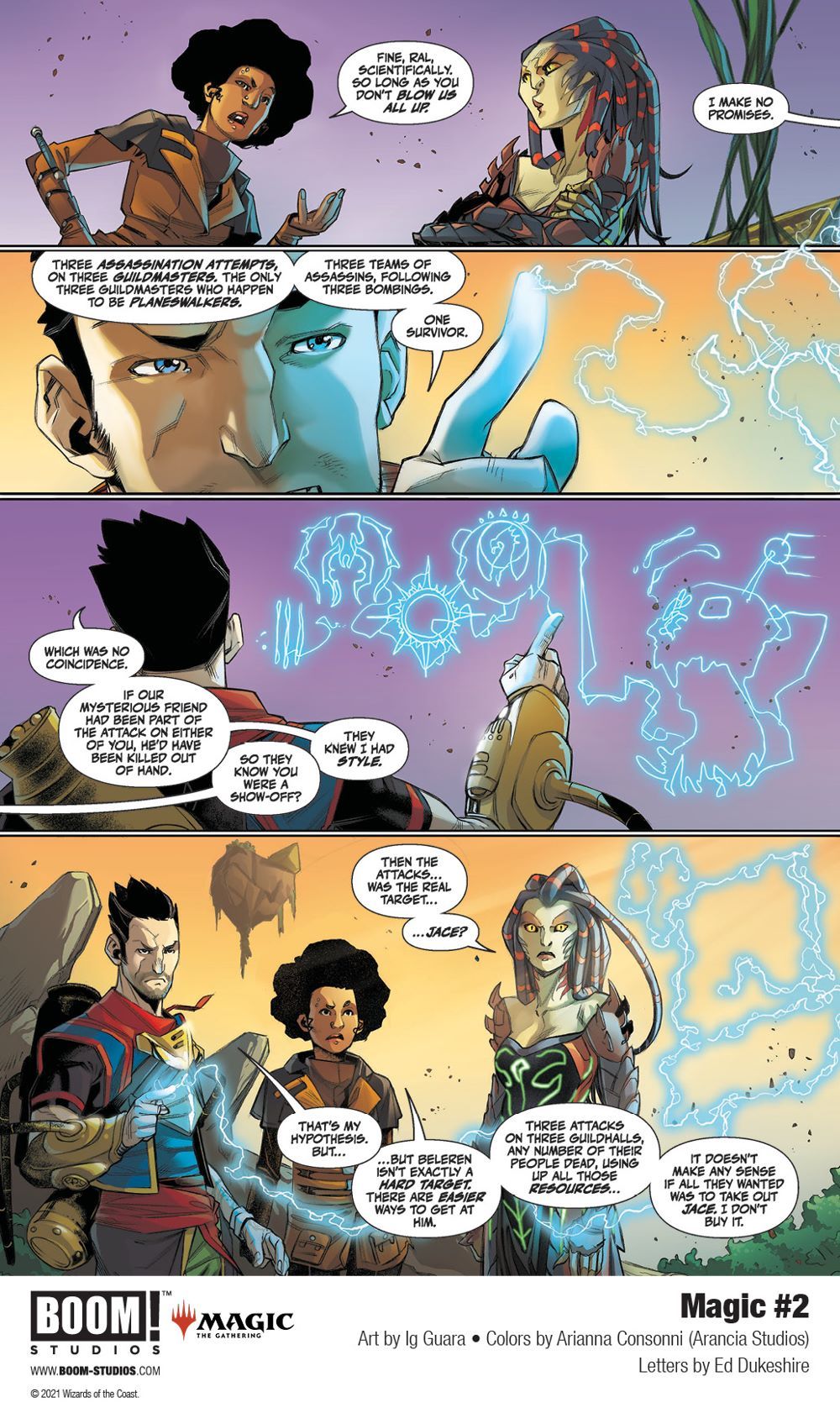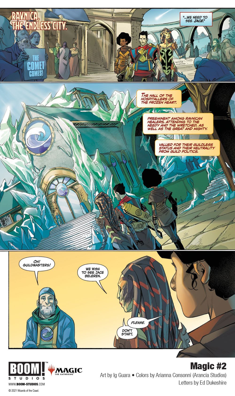 Media Release -- BOOM! Studios, under license by Hasbro, Inc. (NASDAQ: HAS) and in partnership with Wizards of the Coast LLC, revealed today a first look at MAGIC #2, the next issue of the new original comic book series from acclaimed writer Jed MacKay (Marvel's Black Cat), artist Ig Guara (Marvel's Ghost-Spider), colorist Arianna Consonni, and letterer Ed Dukeshire, perfect for new readers and long time fans, available in May 2021.