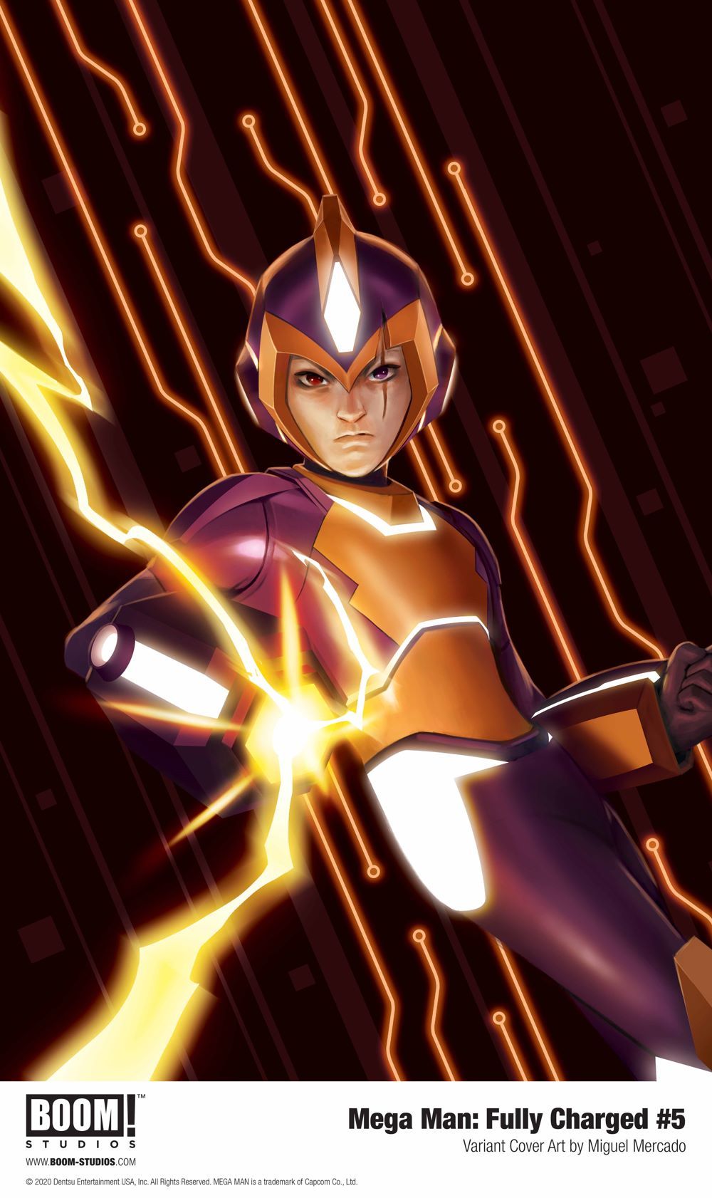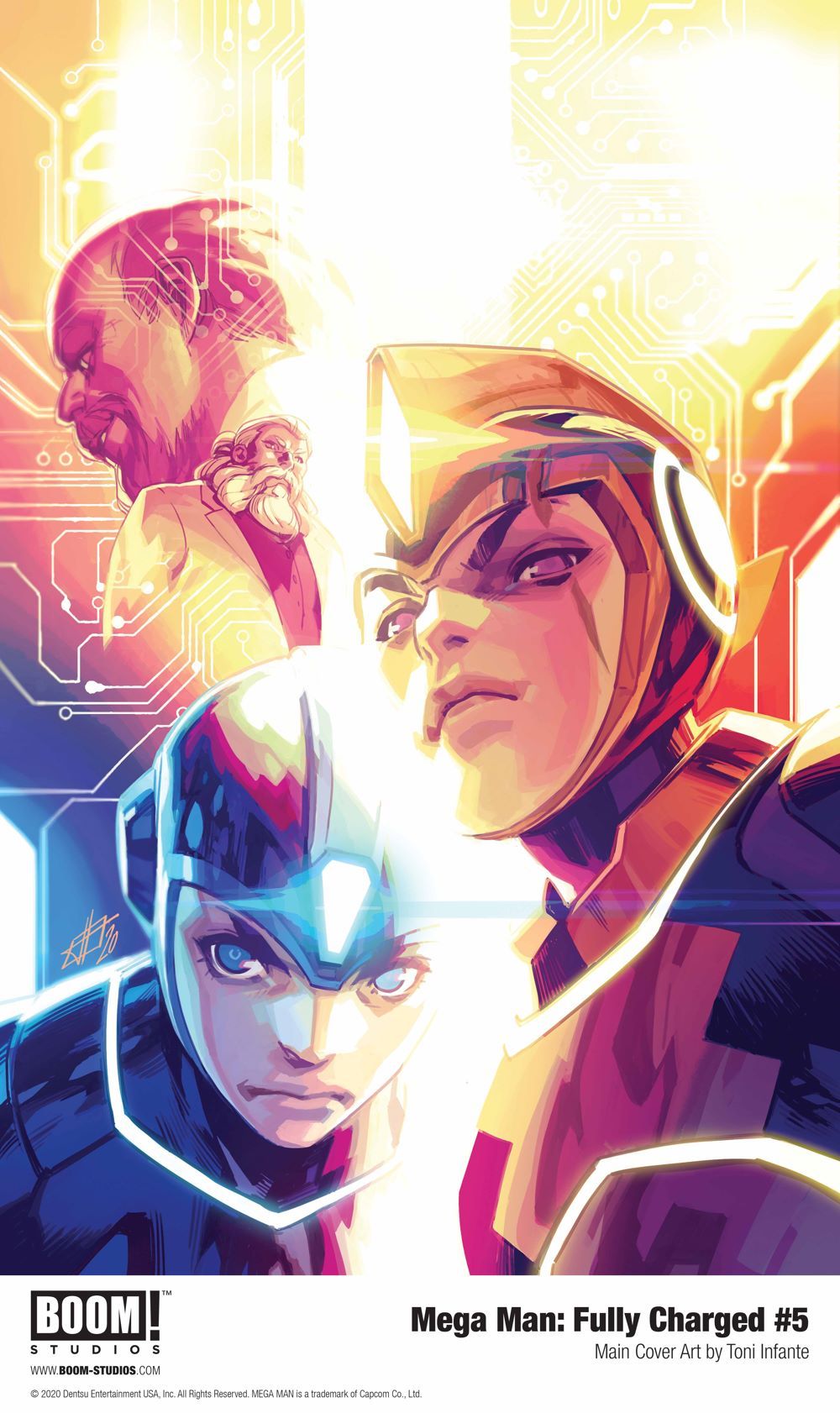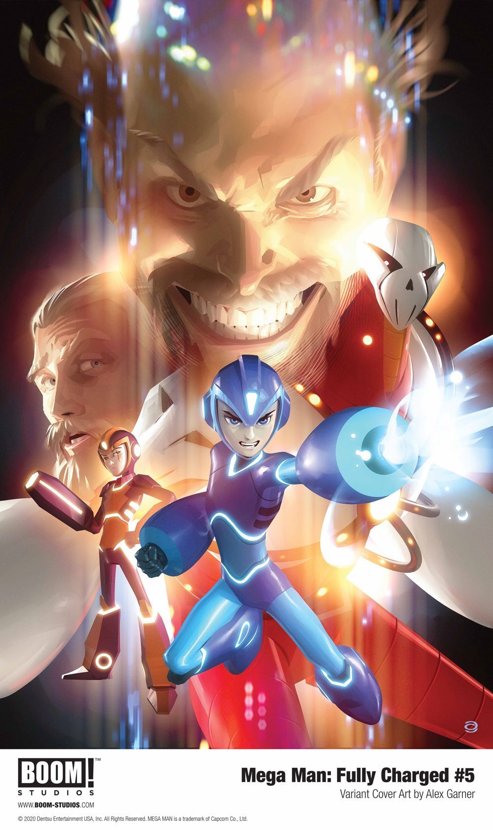 Print copies of MEGA MAN: FULLY CHARGED #5, featuring main cover art by Toni Infante (Champions), as well as variant cover art by artist Miguel Mercado (Buffy the Vampire Slayer) and Alex Garner (Squadron Supreme) are scheduled to be available on December 16, 2020 exclusively at local comic book shops (use comicshoplocator.com to find the one nearest you) or at the BOOM! Studios webstore. Digital copies can be purchased from content providers like comiXology, iBooks, Google Play, and Madefire.
