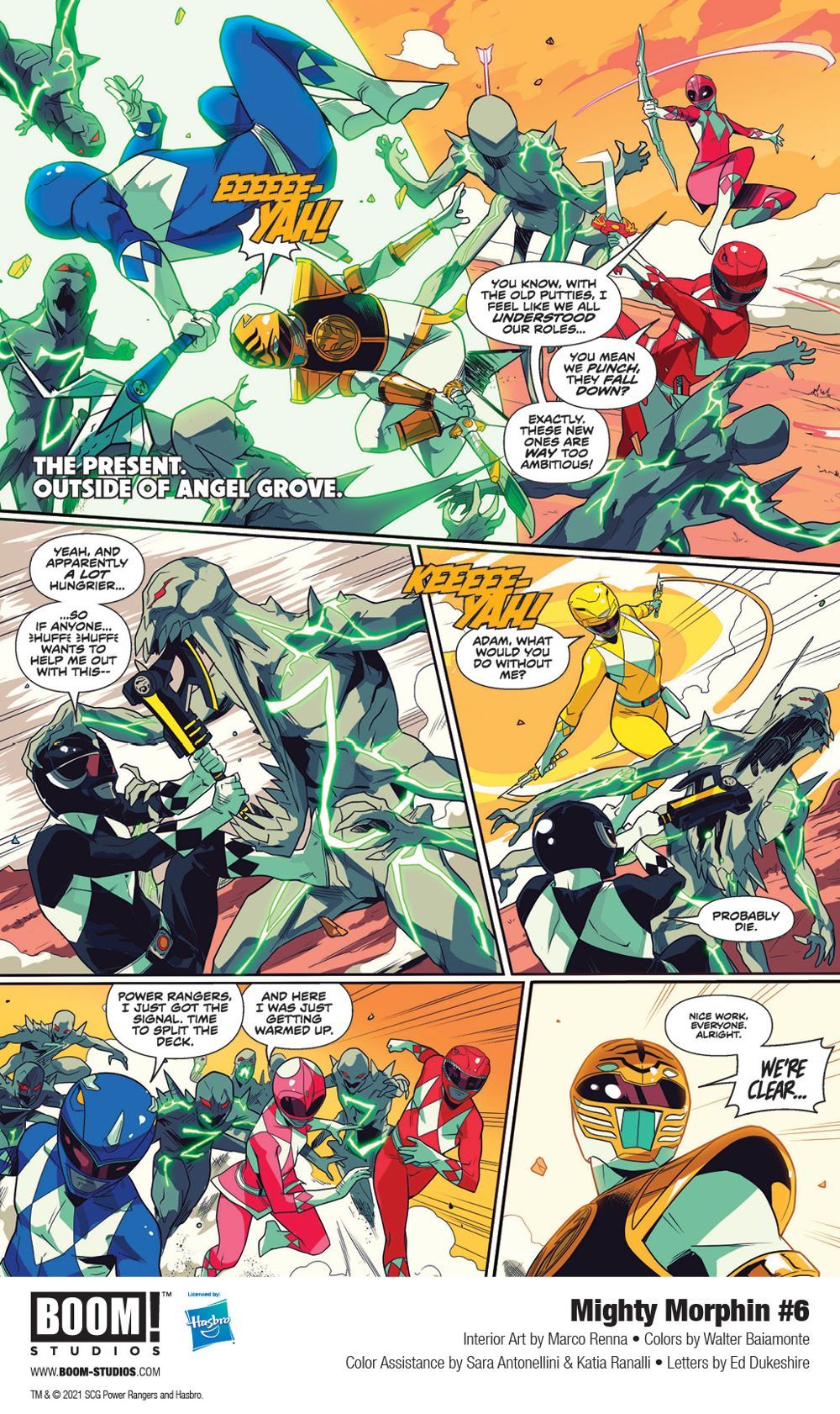 Media Release -- BOOM! Studios, under license by Hasbro, Inc. (NASDAQ: HAS), revealed a first look at MIGHTY MORPHIN #6, from writer Ryan Parrott (Mighty Morphin Power Rangers/Teenage Mutant Ninja Turtles), artist Marco Renna, colorist Walter Baiamonte with assistance by Katia Ranalli and Sara Antonellini, and letterer Ed Dukeshire, the exciting next issue in the ERA OF UNLIMITED POWER.