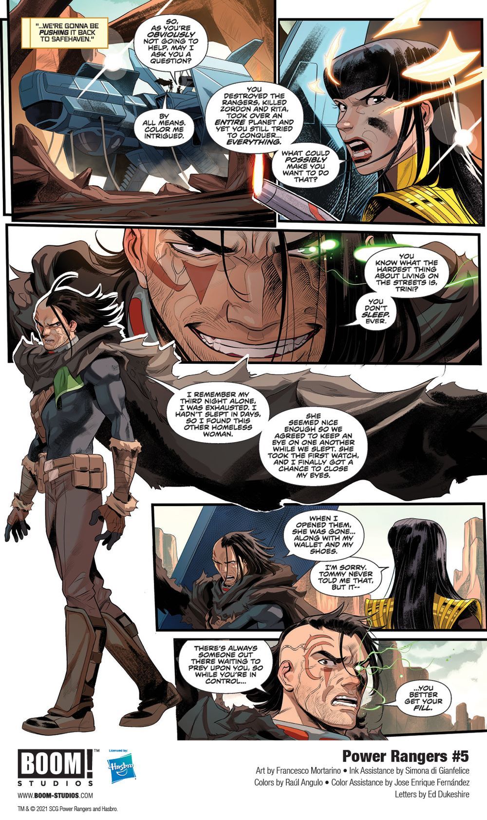 Media Release -- BOOM! Studios, under license by Hasbro, Inc. (NASDAQ: HAS), revealed today a first look at POWER RANGERS #5 from superstar writer Ryan Parrott (Mighty Morphin Power Rangers/Teenage Mutant Ninja Turtles), acclaimed artist Francesco Mortarino (Firefly: The Sting), colorist Raúl Angulo (Buffy the Vampire Slayer), and letterer Ed Dukeshire (Once & Future), in conjunction with the Mighty Morphin series. Two New Series. Two New Teams. The Era of UNLIMITED POWER continues HERE—and only Lord Drakkon, their greatest enemy, can save the Power Rangers in March 2021!