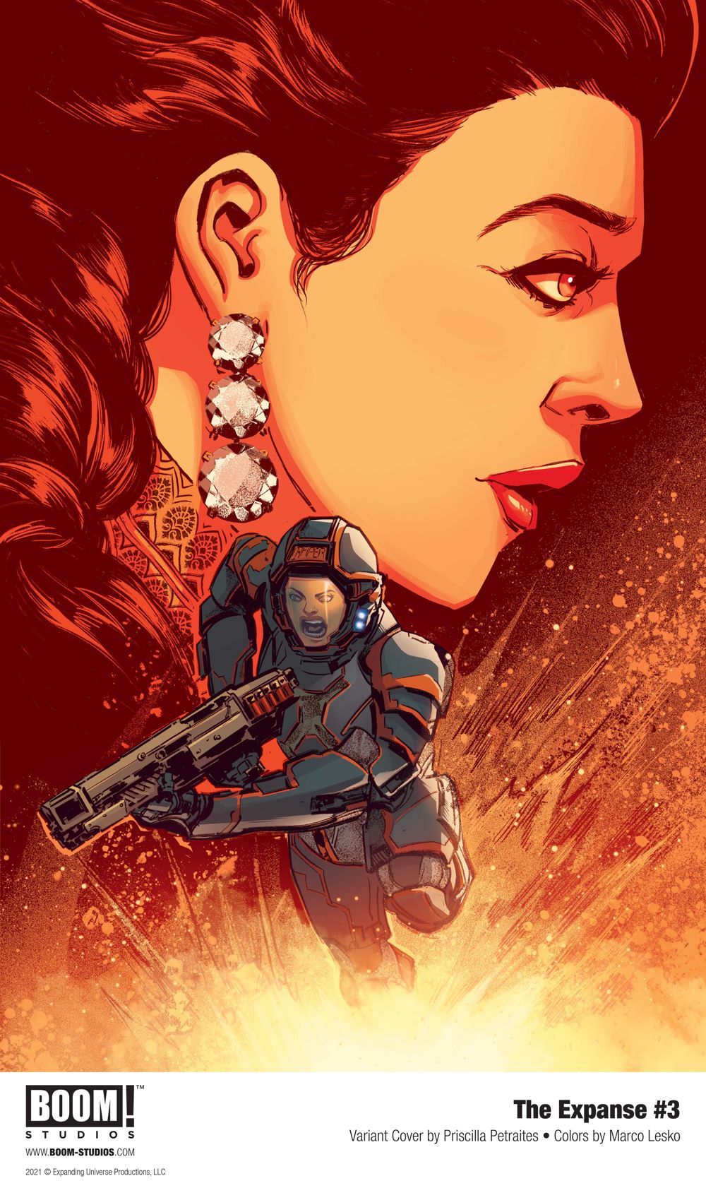 Print copies of THE EXPANSE #3, featuring main cover art by W. Scott Forbes (Firefly), as well as variant cover art by Tigh Walker (Venom: Annual) and Priscilla Petraites (Rat Queens) with colors by Marco Lesko, will be available February 17, 2021 exclusively at local comic book shops (use comicshoplocator.com to find the nearest one) or at the BOOM! Studios webstore. Digital copies can be purchased from content providers like comiXology, iBooks, Google Play, and Madefire.