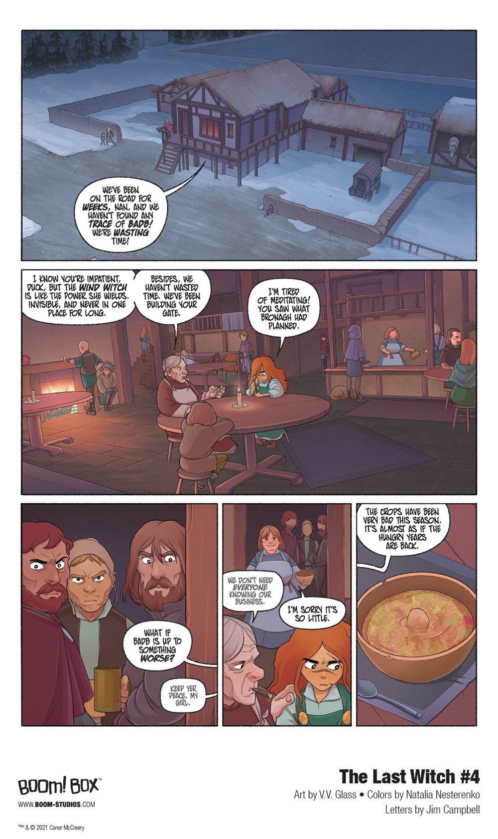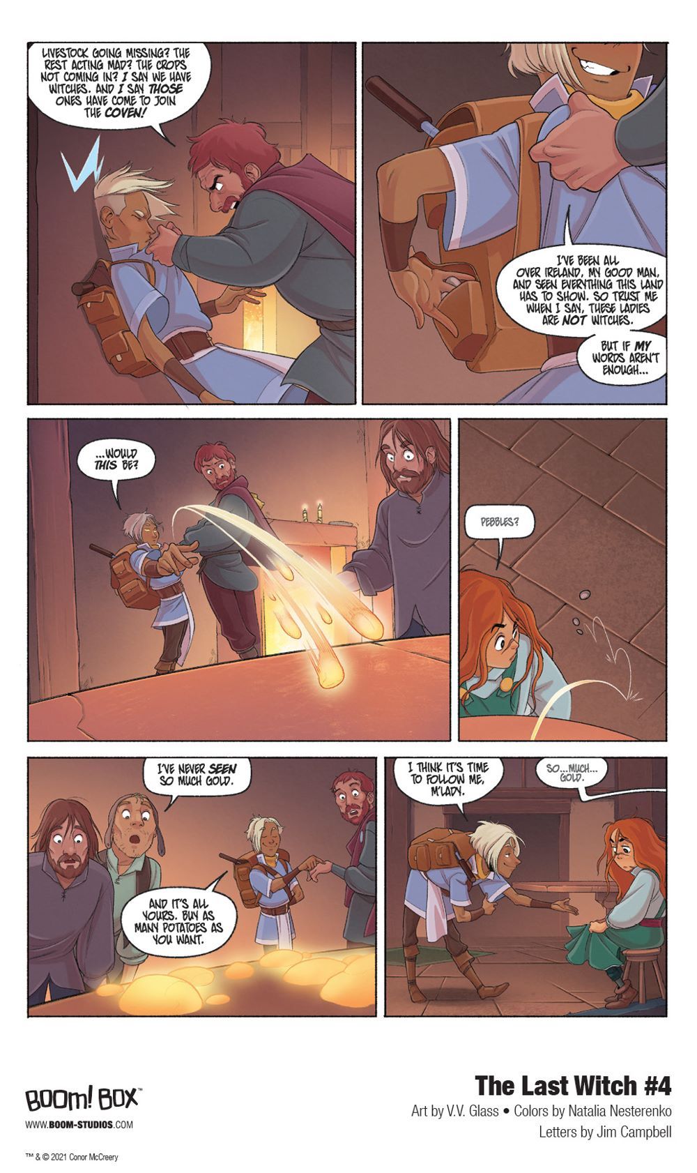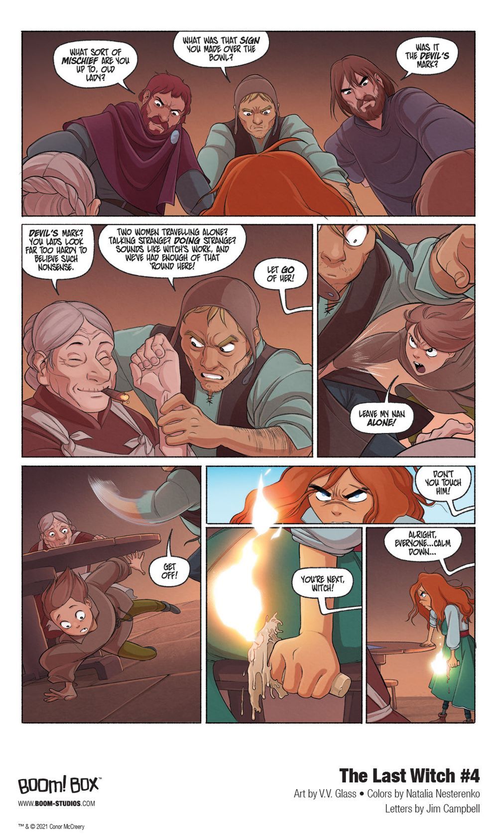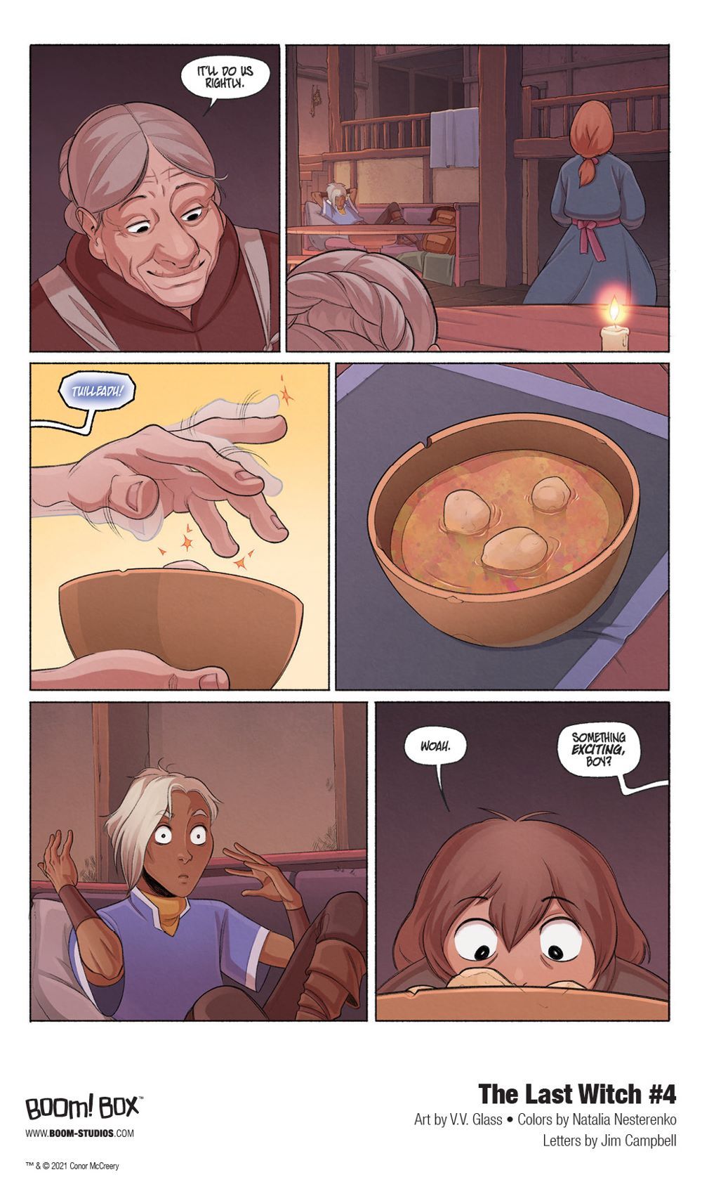 Media Release -- BOOM! Studios today revealed a first look at THE LAST WITCH #4, the next issue of the brand new original series from writer Conor McCreery (Kill Shakespeare), artist V.V. Glass, colorist Natalia Nesterenko, and letterer Jim Campbell, a young adult fantasy comic book series that shows that the greatest magic of all lies inside of us, available in April 2021.