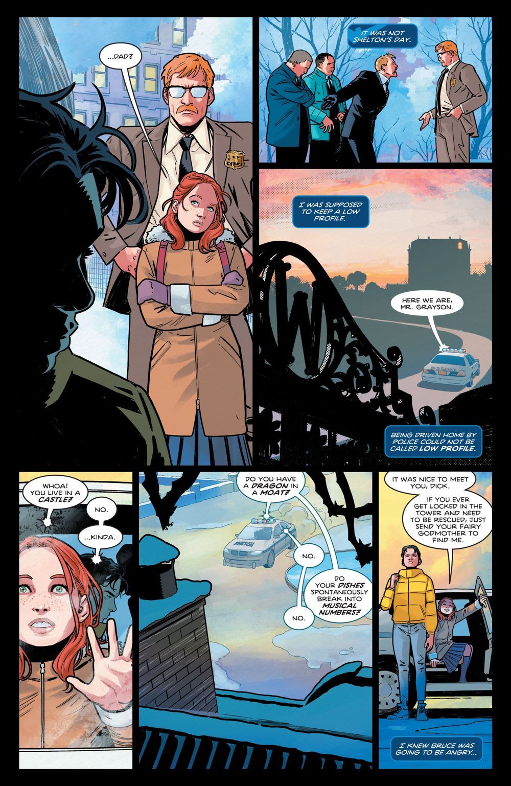 But for our exclusive first look at the issue (due in stores next Tuesday), we journey back to a gentler time when Dick was still Robin and living at Wayne Manor and Barbara was a spunky young firebrand with a thing for taking down bullies. Yes, they were just as adorable then as they are now. Yes, they were just as driven then as they are now. We know you're curious how these two crimefighters-to-be first met! Well, check out this sneak peek to find out and make your plans now to snatch up the full issue when Nightwing's exciting new era kicks off next week!