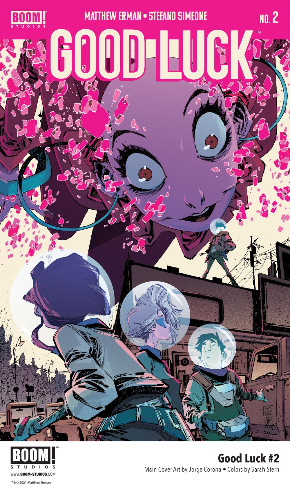 Print copies of GOOD LUCK #2 will be available for sale on July 28, 2021 exclusively at local comic book shops (use comicshoplocator.com to find the one nearest you) or at the BOOM! Studios webstore. Digital copies can be purchased from content providers, including comiXology, iBooks, Google Play, and Kindle.