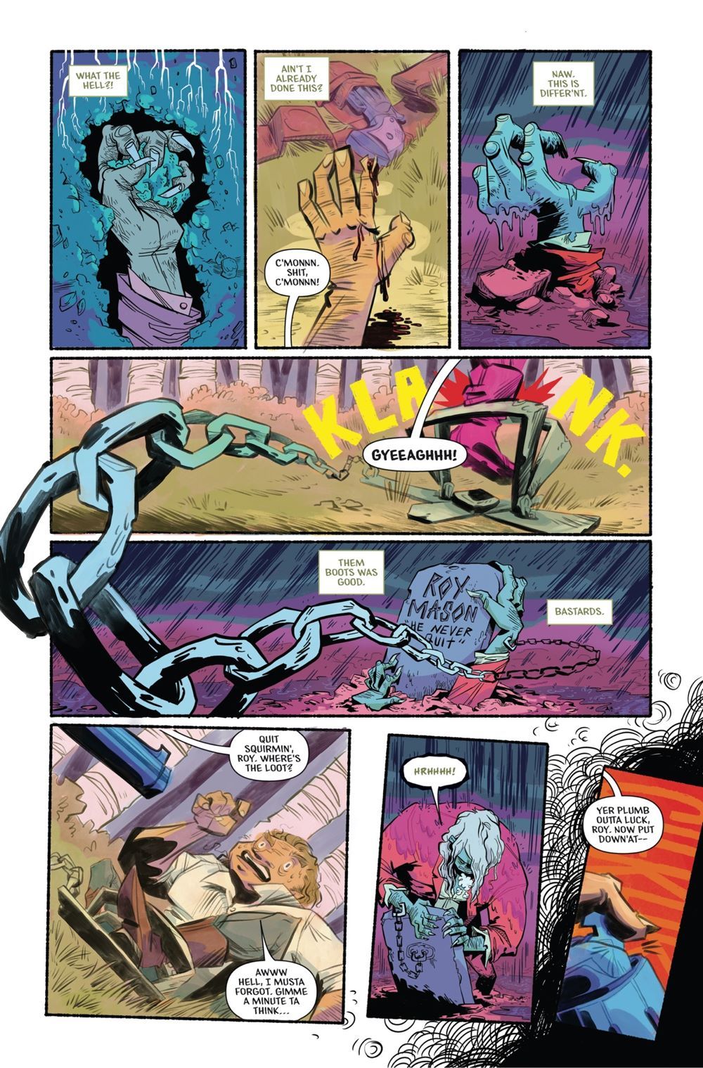 Outlaw Roy Mason has come back from the dead, chained to the headstone that marked his grave. It's a lawless time, a magical time, and the undead Roy finds himself caught between a rock and a hard place as he sets out in search of treasure. But Roy, trying to do right by the wife and children he left behind, soon finds out that everything is not always as it seems…