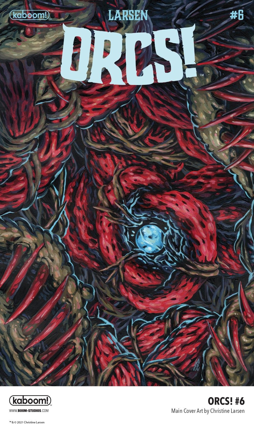 Print copies of ORCS! #6 featuring main cover art by series artist Christine Larsen, as well as variant cover art by Sweeney Boo (Eat, And Love Yourself) and Qistina Khalidah (An Unkindness of Ravens), will be available for sale on July 14, 2021 exclusively at local comic book shops (use comicshoplocator.com to find the nearest one) or at the BOOM! Studios webstore. Digital copies can be purchased from content providers, including comiXology, iBooks, Google Play, and Kindle.