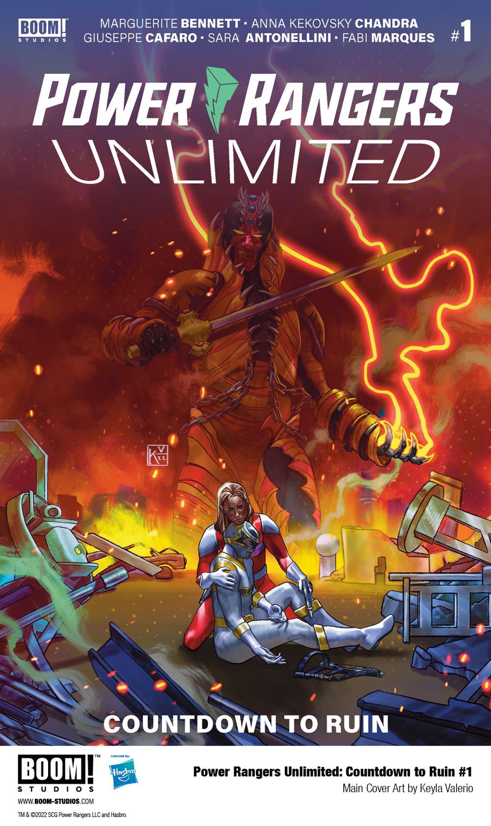 Media Release -- BOOM! Studios, under license by Hasbro, Inc. (NASDAQ: HAS), today revealed an exclusive first look at POWER RANGERS UNLIMITED: COUNTDOWN TO RUIN #1, an exciting new one-shot adventure by highly acclaimed author Marguerite Bennett (Batwoman, M.O.M. Mother of Madness), rising star artists Anna Kekovsky Chandra and Giuseppe Cafaro, colorists Sara Antonellini, with color assistance from Sharon Marino, and Fabi Marques, and letterer Ed Dukeshire, presenting a brand new story that ties the past, present, and future of the Power Rangers together into an unforgettable saga that will have ramifications for all things Morphin across the galaxy . . .