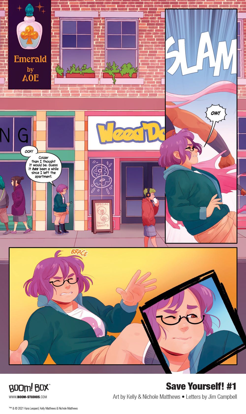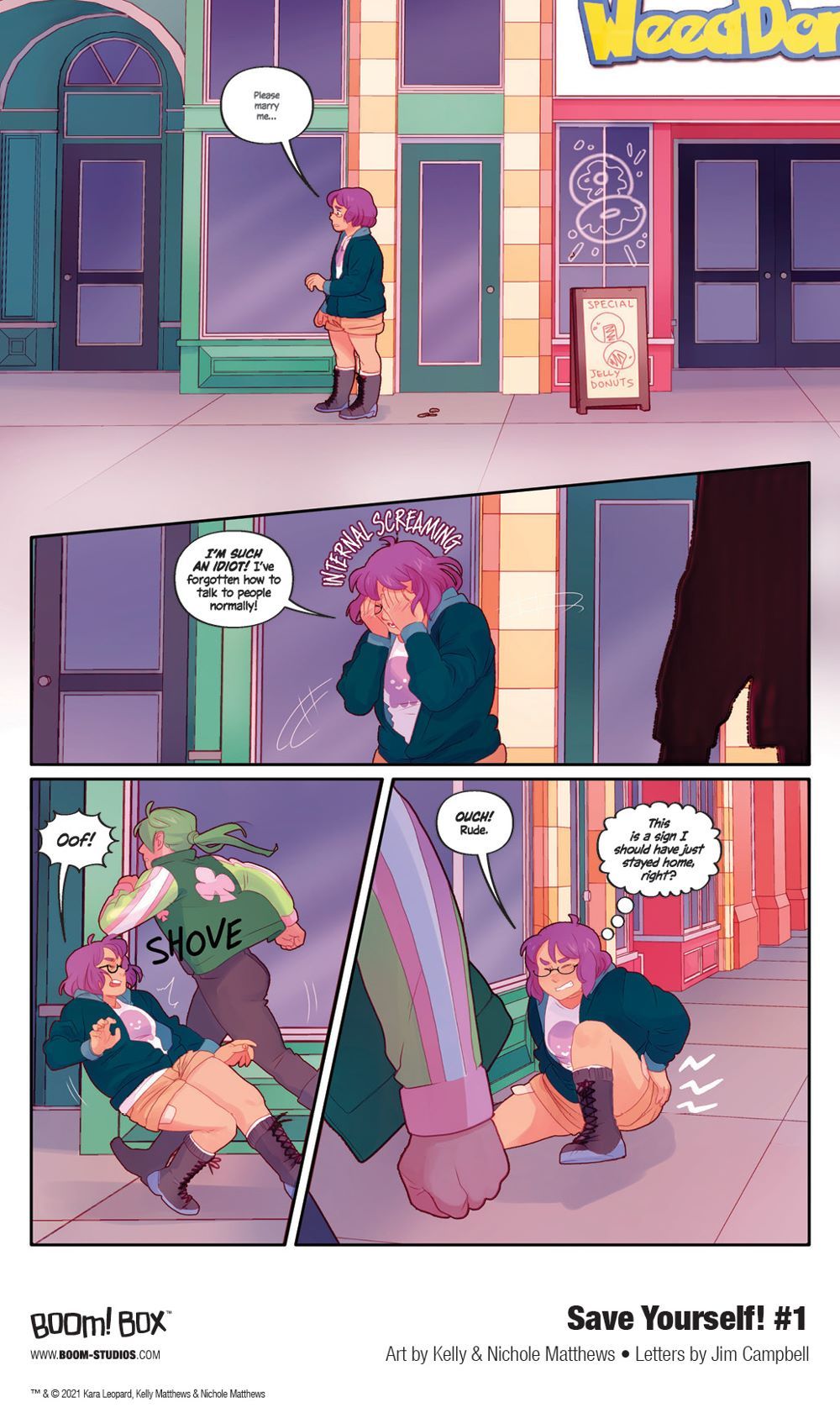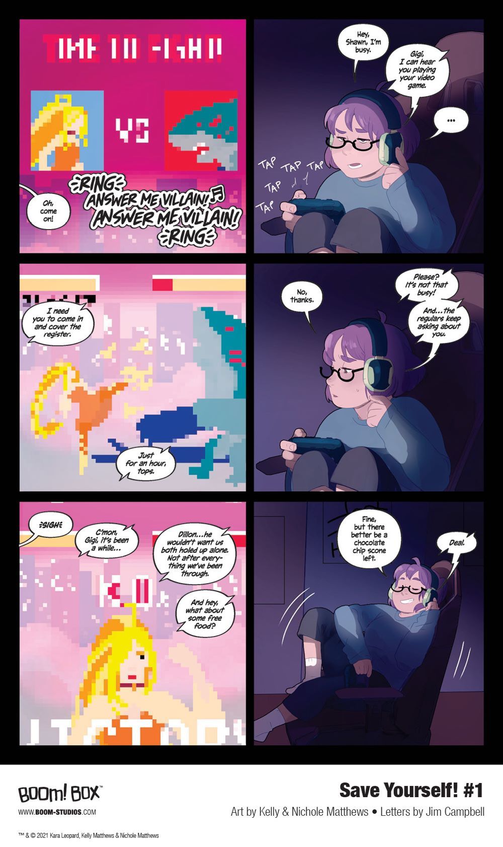 Print copies of SAVE YOURSELF! #1 will be available for sale on June 16, 2021 exclusively at local comic book shops (use comicshoplocator.com to find the nearest one) or at the BOOM! Studios webstore. Digital copies can be purchased from content providers, including comiXology, iBooks, Google Play, and Kindle.