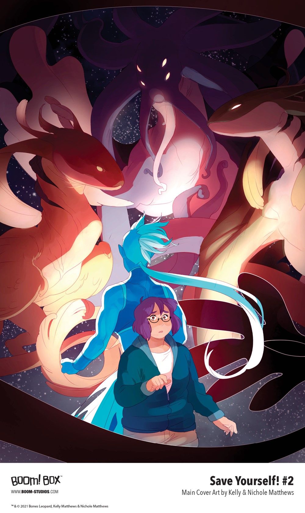 SAVE YOURSELF! #2 features main cover art by series artists Kelly & Nichole Matthews, and a Magical Girl variant cover by acclaimed director and artist Stephanie Gonzaga (Ducktales).