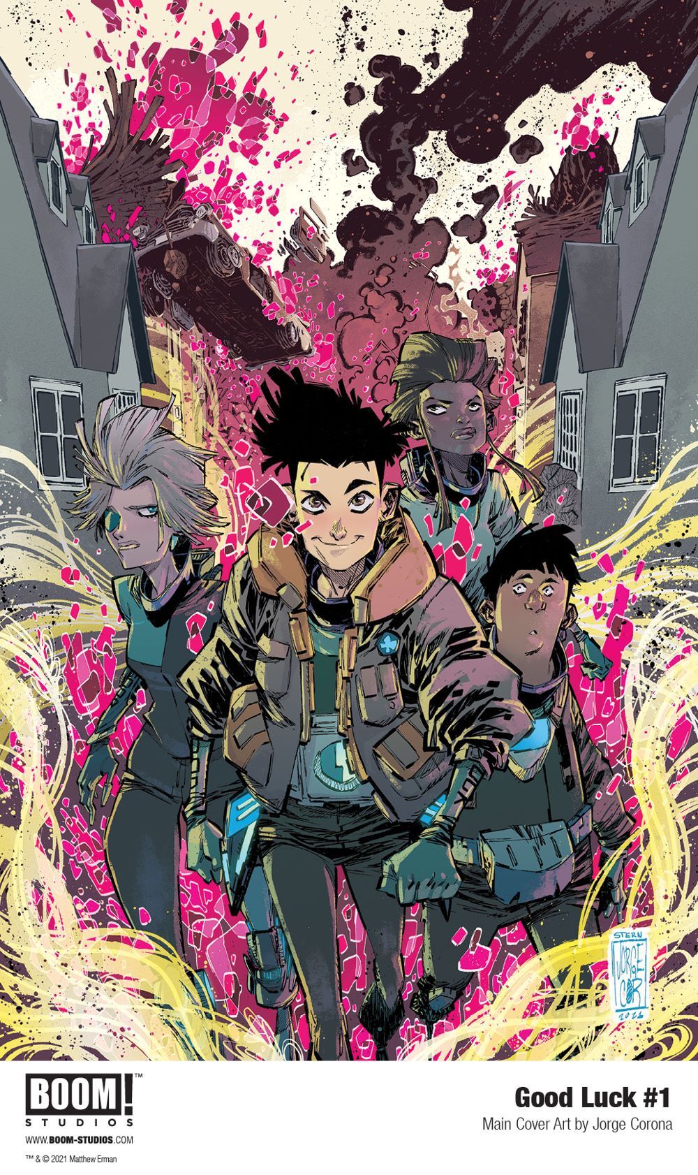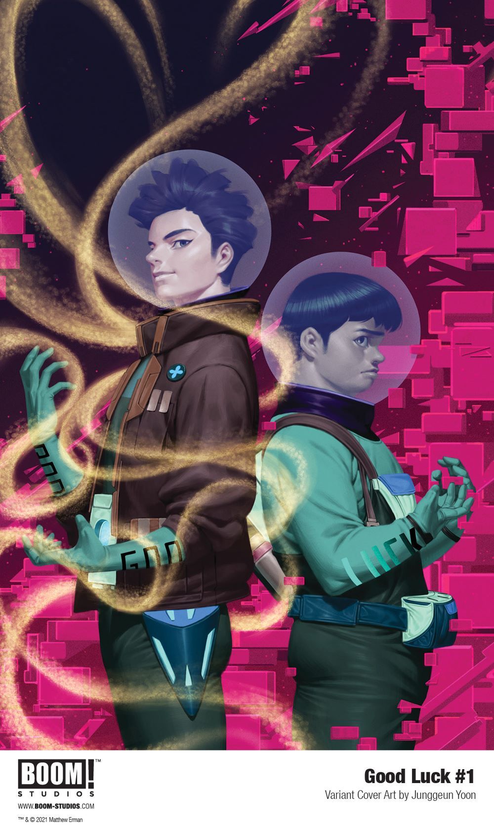GOOD LUCK #1 features main cover art by artist Jorge Corona (Wynd) and variant covers by famed illustrator Gerald Parel (Symbiote Spider-man: King in Black) and acclaimed artist Junggeun Yoon (Magic, Mighty Morphin).