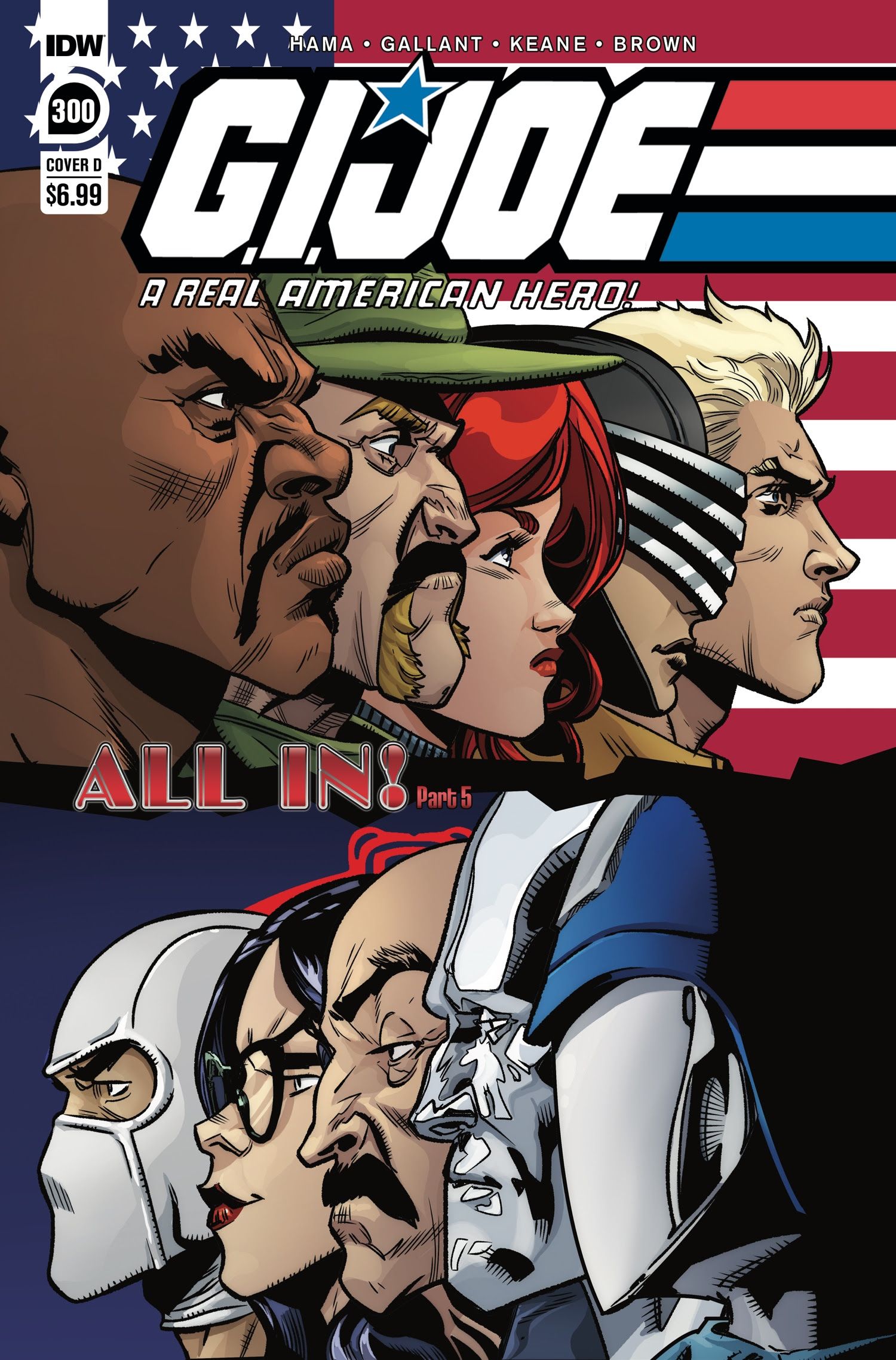 G.I. JOE: A Real American Hero #300, the final issue of IDW's G.I. Joe series, will be available with six cover variants, including Covers A and B by Jamie Sullivan; Cover C by Netho Diaz; Cover D by Kieran McKeown; two retailer incentive covers by John Royle and Ron Joseph, respectively; and a special retailer incentive wraparound of Sullivan's world record-setting cover without trade dress, so every single detail and character can be seen in its full glory.