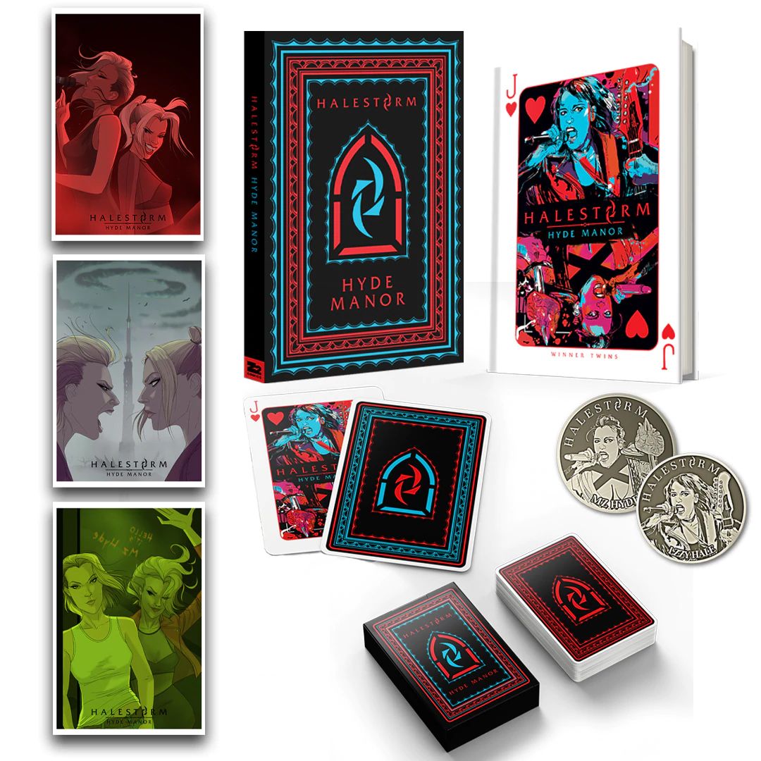 Z2 Comics and Halestorm present Hyde Manor in both softcover and hardcover formats, as well as oversized hardcover deluxe, and an oversized hardcover deluxe edition. Alison Sampson provides cover art. Deluxe Editions include gallery-ready prints courtesy of fan artist Egidija Guobyte, as well as a Lzzy Hale/Ms. Hyde two-sided coin, Ms. Hyde special edition Collector’s Card in a plastic frame, and an exclusive Halestorm: Hyde Manor Deck of Cards. Preorder yours today!