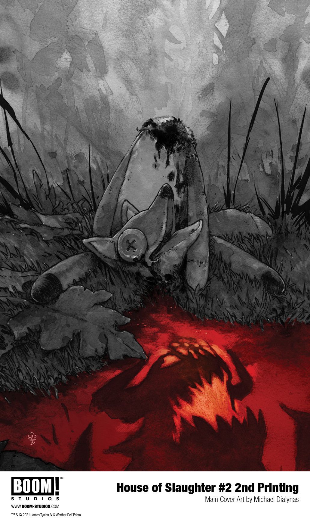 In response to the overwhelming support from retailers and fans, BOOM! Studios has announced HOUSE OF SLAUGHTER #2 SECOND PRINTING, featuring two brand new covers! The main cover and black and white variant feature art by acclaimed artist Michael Dialynas (Wynd, The Woods), available in stores on January 12, 2022.
