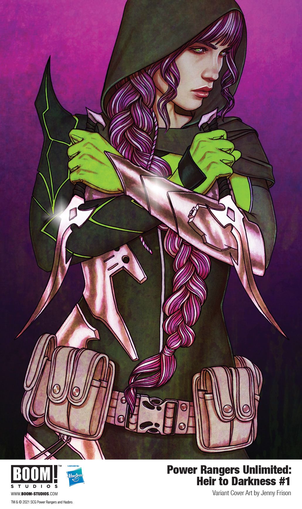 Media Release -- BOOM! Studios, under license by Hasbro, Inc. (NASDAQ: HAS), today revealed the variant cover by acclaimed artist Jenny Frison (Wonder Woman) of the brand new oversized special issue, POWER RANGERS UNLIMITED: HEIR TO DARKNESS #1, as acclaimed author L.L. McKinney (A Blade So Black), artist Simone Ragazzoni (Power Rangers: Drakkon New Dawn), colorist Igor Monti (Mighty Morphin Power Rangers), and letterer Ed Dukeshire (Once & Future) present a powerful new story that no Power Rangers fan can miss in March 2021.