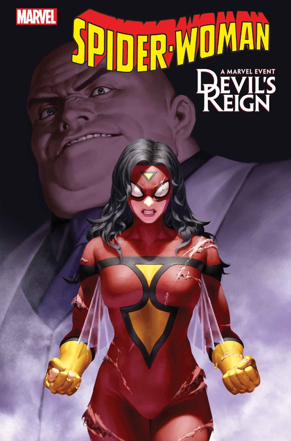 DEVIL'S REIGN will also tie into some of your favorite ongoing series including December's SPIDER-WOMAN #18 by series creative team, writer Karla Pacheco and artist Pere Pérez. Mayor Wilson Fisk is purging vigilantes from his city, and Spider-Woman is on his list! Fisk will do anything to bring her down, including going after her loved ones. It's all on the line for Spider-Woman during DEVIL'S REIGN! Here's Pacheco had to say about what's come for Jessica Drew: