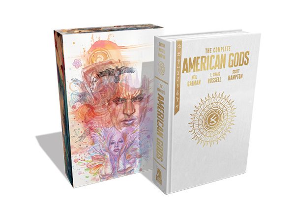Media Release -- Experience The Complete American Gods comic series collected into a deluxe, oversized hardcover. Adapted by P. Craig Russell from the award-winning novel by Neil Gaiman, this complete edition of American Gods comes with a slipcase illustrated by David Mack and a bookmark ribbon with a gold pattern.