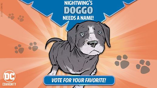 And as readers saw in Nightwing #78, there's a new furry friend in town! Nightwing's heroic three-legged puppy, currently nicknamed "Bitewing" by fans but who remains nameless in the comic book, needs a civilian name! Fans are encouraged to vote online for their favorite name—Haley, Shadow, Blue or Hope—between now and March 30 by way of a DC UNIVERSE INFINITE poll. The option with the most votes will become her new namesake!