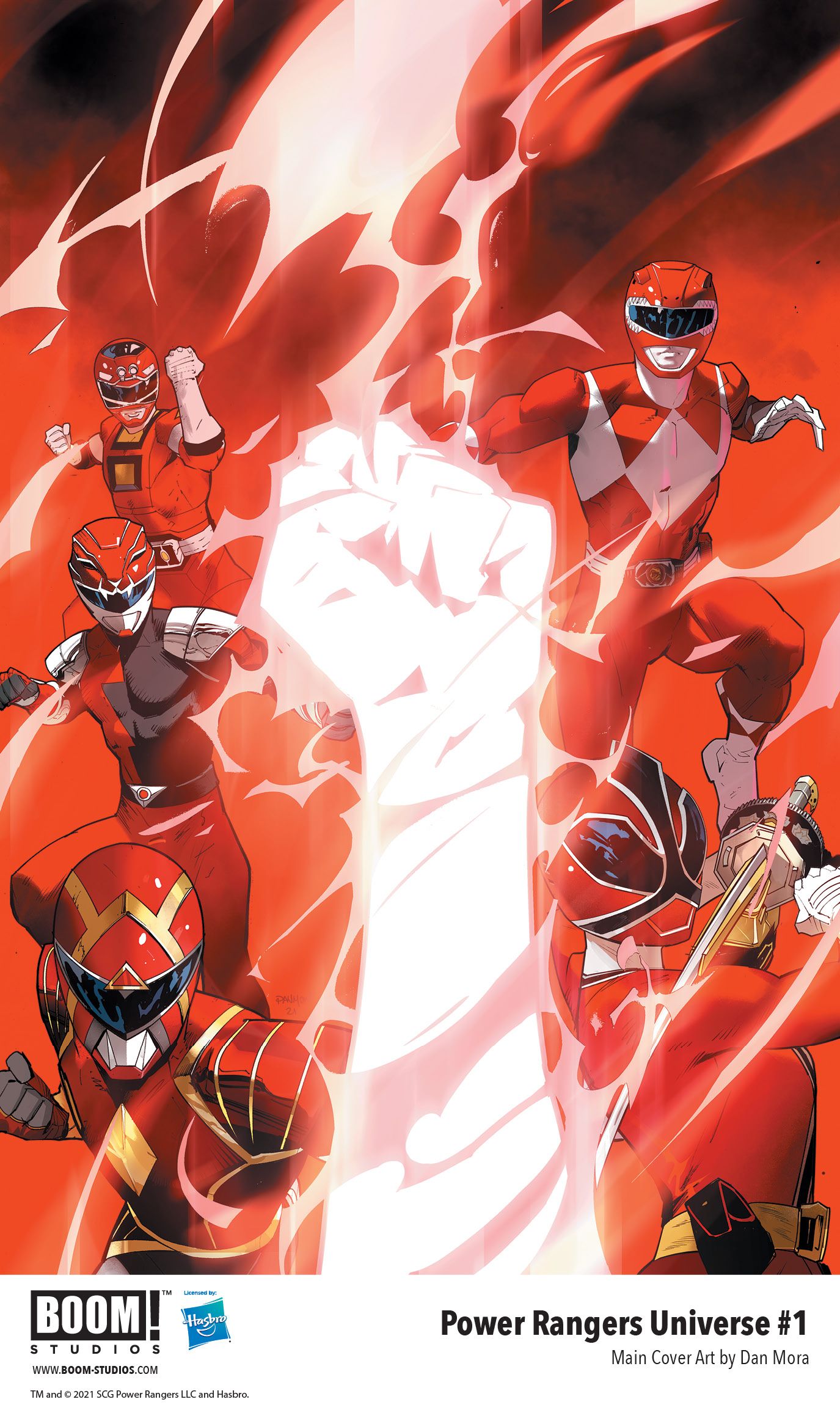 POWER RANGERS UNIVERSE #1 features main cover art by Dan Mora (Once & Future) and variant cover art by illustrators Miguel Mercado (Magic), Goñi Montes (Mighty Morphin), InHyuk Lee (Wolverine), and more.