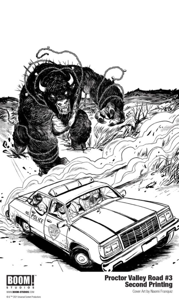 In response to the overwhelming support from retailers and fans, BOOM! Studios has announced PROCTOR VALLEY ROAD #3 SECOND PRINTING, featuring cover art by series artist Naomi Franquiz, which will be available in stores June 23, 2021.