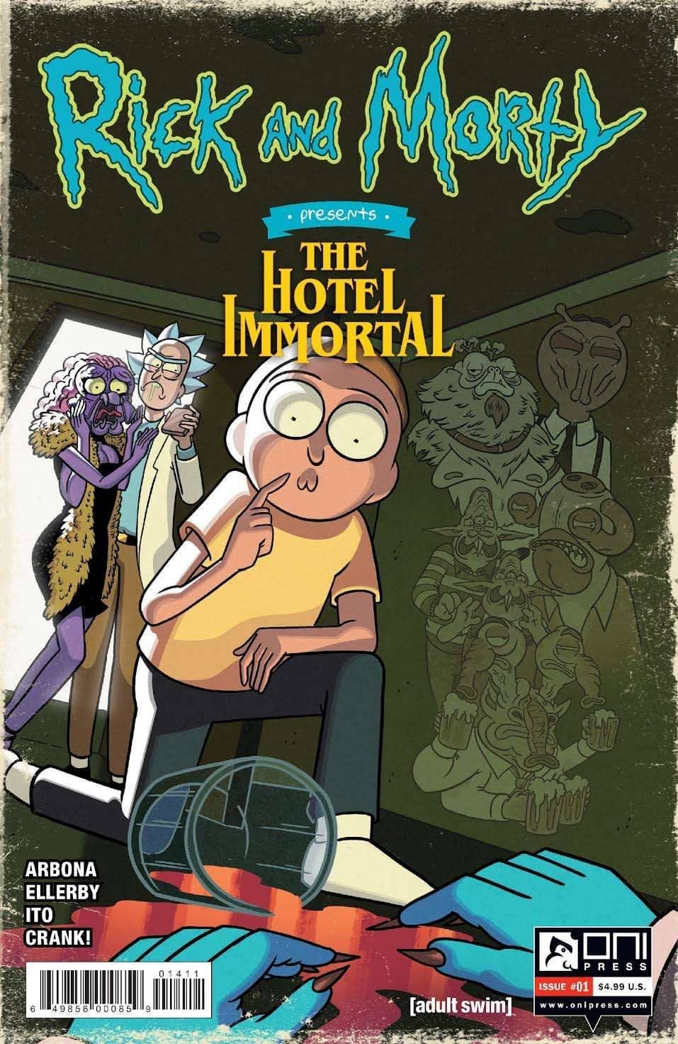 Media Release -- Coming soon from the Oni-Lion Forge Publishing Group and Adult Swim, a brand-new Rick and Morty™ comic crashes into comic book shops in July 2021 with Rick and Morty™ Presents: Hotel Immortal from the creative team of writer Alejandro Arbona, illustrator Marc Ellerby, and colorist Leonardo Ito, with lettering by Crank!. The next installment of the Rick and Morty™ Presents series kicks off with a whodunnit in Rick and Morty™ Presents: Hotel Immortal. When Cornvelious Daniels checks in for some R&R at the Hotel Immortal, bodies start dropping—and accusations start flying!