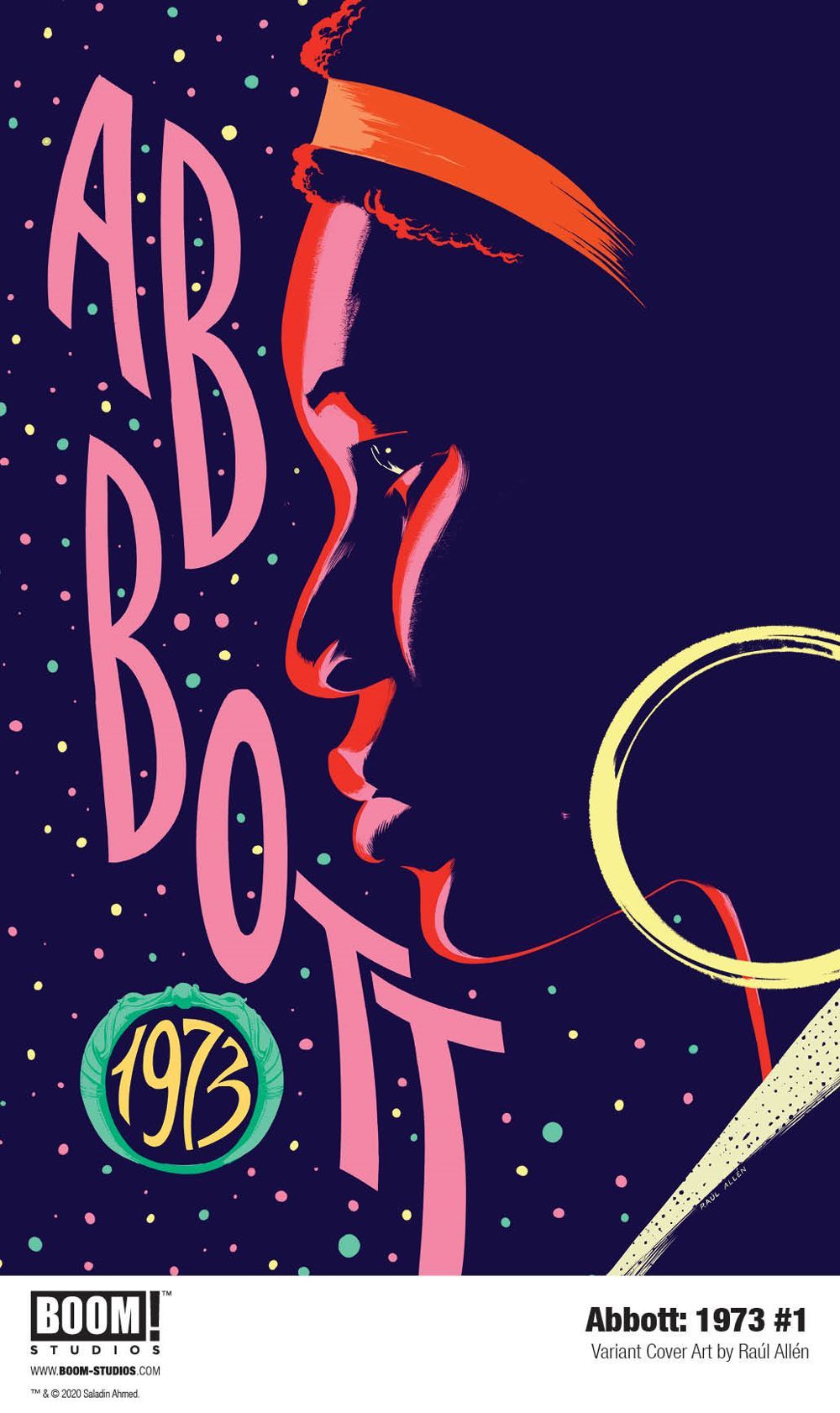 Print copies of ABBOTT: 1973 #1 will be available for sale in January 2021 exclusively at local comic book shops (use comicshoplocator.com to find the nearest one) or at the BOOM! Studios webstore. Digital copies can be purchased from content providers, including comiXology, iBooks, Google Play, and Madefire.