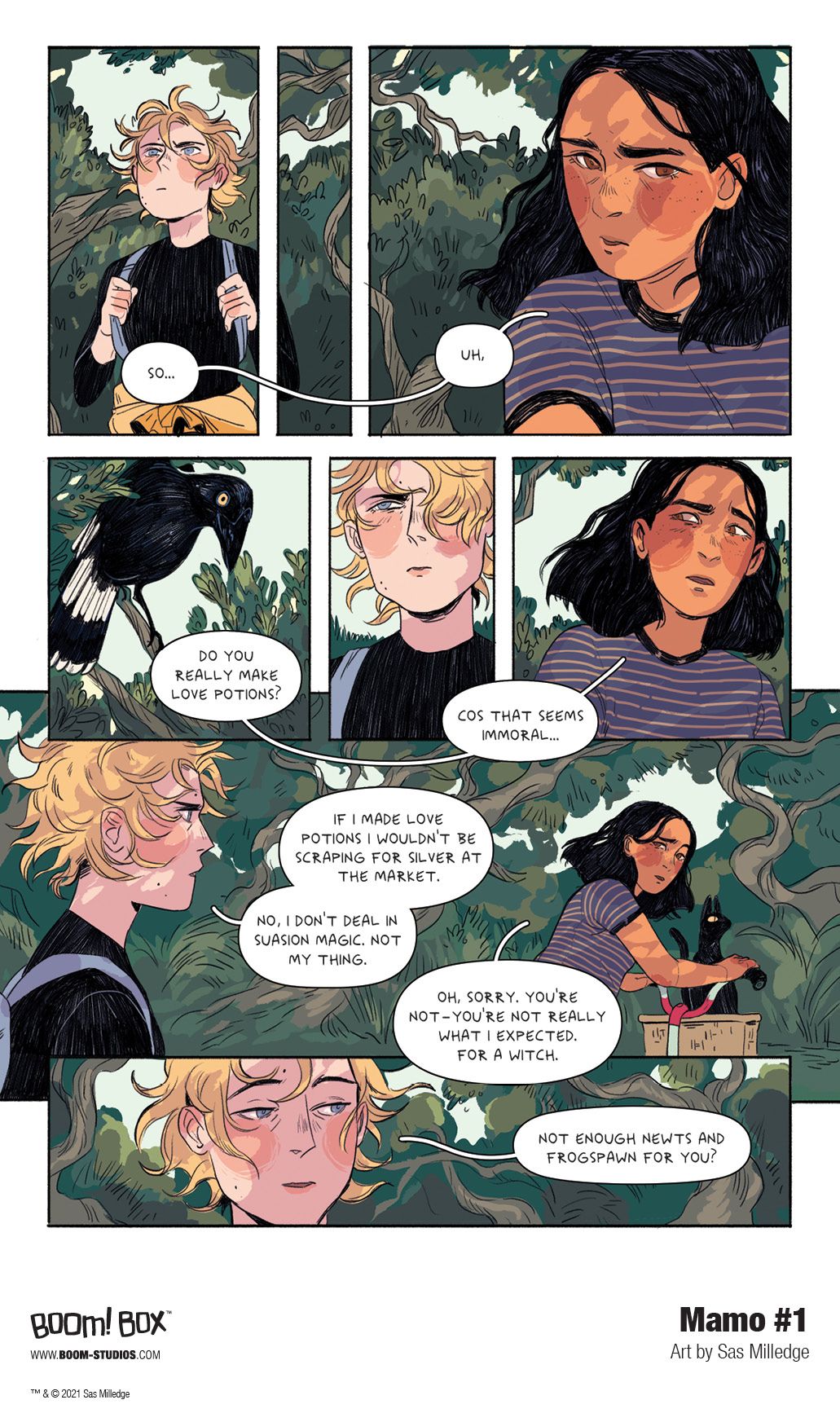 "Sas Milledge has magicked into existence an exciting new world for us to explore, filled with the most delightful witches, magic, and mystery," said Sophie Philips-Roberts, Associate Editor, BOOM! Studios. "MAMO is a fresh new take on the modern witch, and also, an insightful look at what it's like to grow up, move away, then come home as an adult to deal with family and legacies long forgotten."