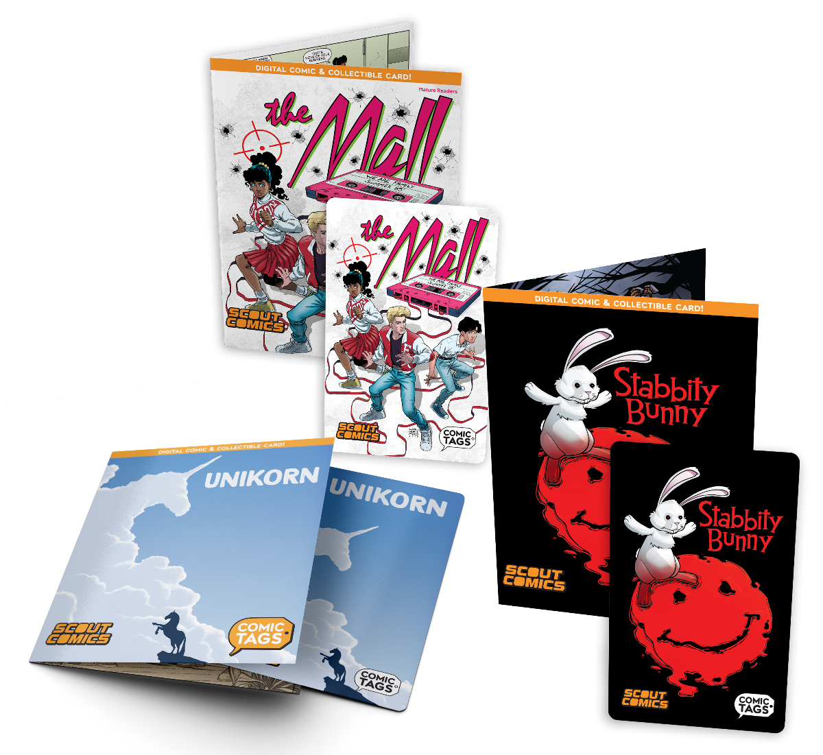 COMIC TAGS first wave of releases will be some of the most popular SCOUT COMICS series to date. Eight (8) titles in total featuring THE MALL, WHITE ASH, MINDBENDER, STABBITY BUNNY, IT EATS WHAT FEEDS IT, GUTT GHOST, SOLAR FLARE & THE SOURCE are available now, with more titles -- and more PUBLISHERS coming on board in the future.