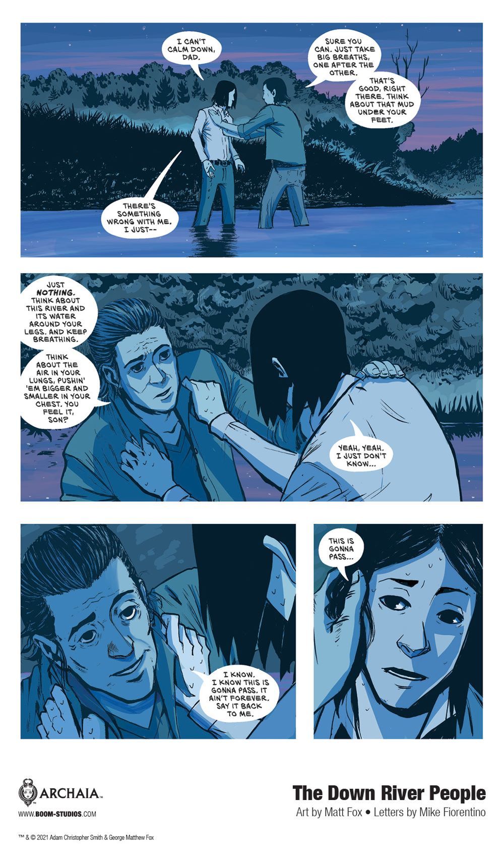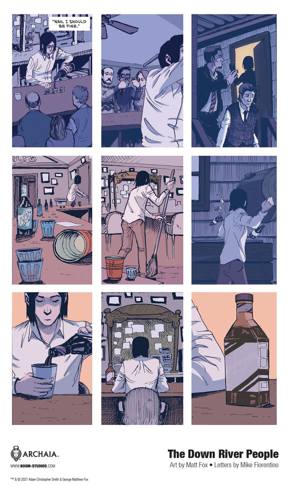 Print copies of THE DOWN RIVER PEOPLE will be available for sale on May 26, 2021 at local comic book shops (use comicshoplocator.com to find the nearest one) and on June 1, 2021 at bookstores or at the BOOM! Studios webstore. Digital copies can be purchased from content providers, including comiXology, iBooks, Google Play, and Madefire.