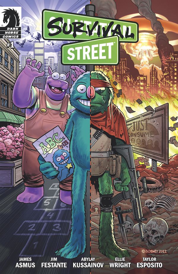 A candy coating of pop culture madness, humor, and cartoonishly absurd hyper-violence is heading to comic shops soon with Survival Street from Dark Horse Comics! Dashed with just enough hope to keep you holding on, Survival Street is an action satire written by five-time Harvey Award nominee James Asmus (Ricky & Morty: Corporate Assets) and Jim Festante (Rick & Morty Presents Mr. Meeseeks, The End Times of Bram & Ben), drawn and inked by Abylay Kussainov (Brothers), colored by Ellie Wright (We Only Kill Each Other, The Black Ghost), and lettered by Taylor Esposito (No One Left To Fight). Issue #1 also features a variant cover by Ben Dewey.
