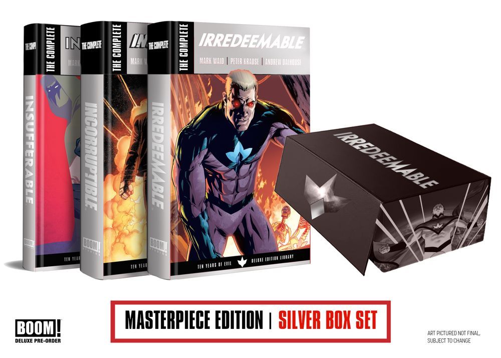 Mark Waid's IRREDEEMABLE, INCORRUPTIBLE and INSUFFERABLE are being collected in THE COMPLETE IRREDEEMABLE DELUXE EDITION LIBRARY.
