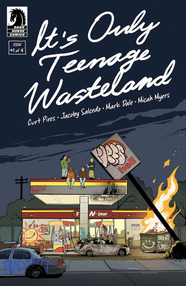 Media Release -- From Dark Horse Comics, Acclaimed creator Curt Pires (Youth, WYRD) and rising star artist Jacoby Salcedo comes It's Only Teenage Wasteland, a new coming-of-age post-apocalyptic comic series. In addition to Pires' and Salcedo's work, Mark Dale will color and Micah Myers will letter. The first issue will also include a variant cover by Antonio Fuso.