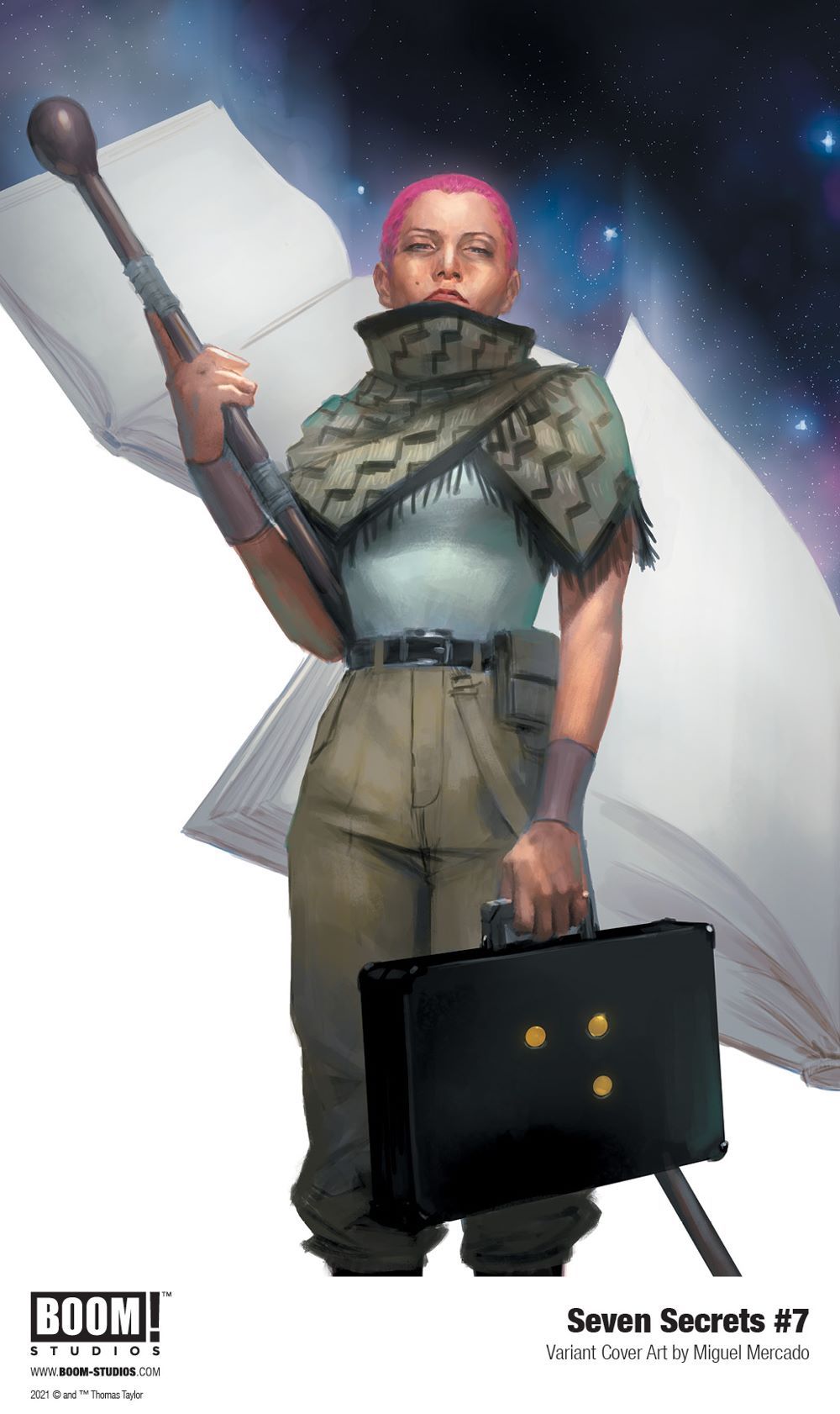 Media Release -- BOOM! Studios today announced the return of the blockbuster series SEVEN SECRETS on April 7, 2021 with issue #7, kicking off the next chapter of the highly praised new original comic book series from New York Times bestselling author Tom Taylor (DCeased), artist Daniele Di Nicuolo (Mighty Morphin Power Rangers), colorist Walter Baiamonte, and letterer Ed Dukeshire, about the seven powerful secrets—words, wonders, weapons, and worse—with the power to change the world.