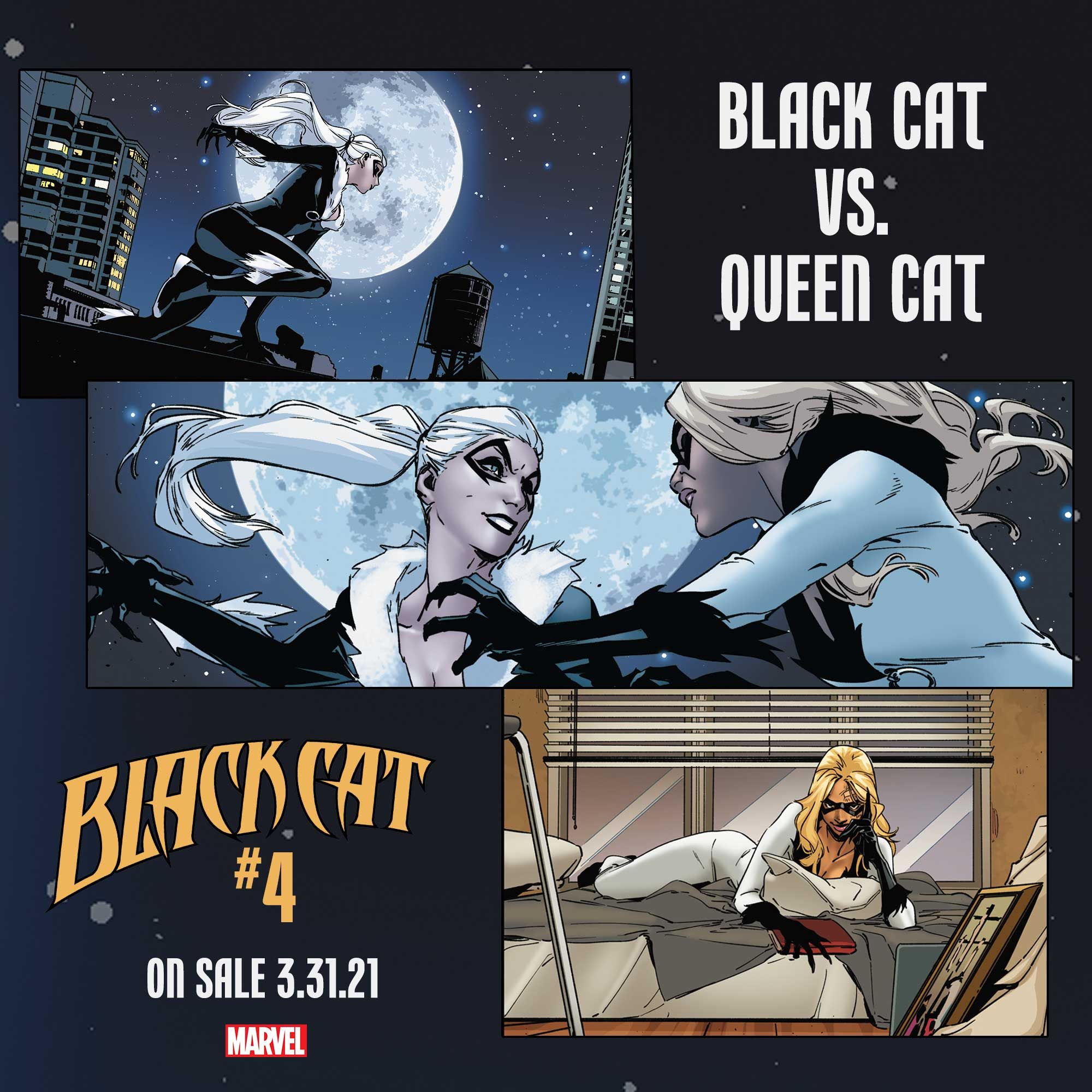 Media Release -- Black Cat. Queen Cat. There's only room for one. Who will come out on top? Find out when their bitter feud reaches its heartbreaking climax in BLACK CAT #4. Fans, place your bets as QUEEN CAT enters the spotlight to torment Felicia Hardy in a showdown that will have a major impact on Black Cat's future in the Marvel Universe. Don't miss this explosive new chapter in Jed MacKay's daring run on BLACK CAT when it hits stands on March 31st.