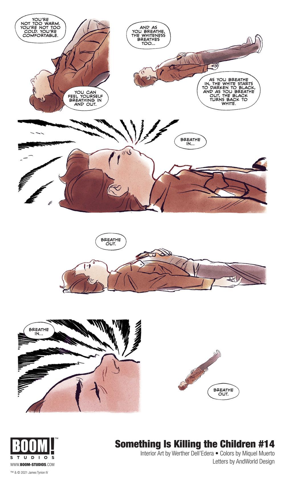 BOOM! Studios has released a formidable first look at SOMETHING IS KILLING THE CHILDREN #14.